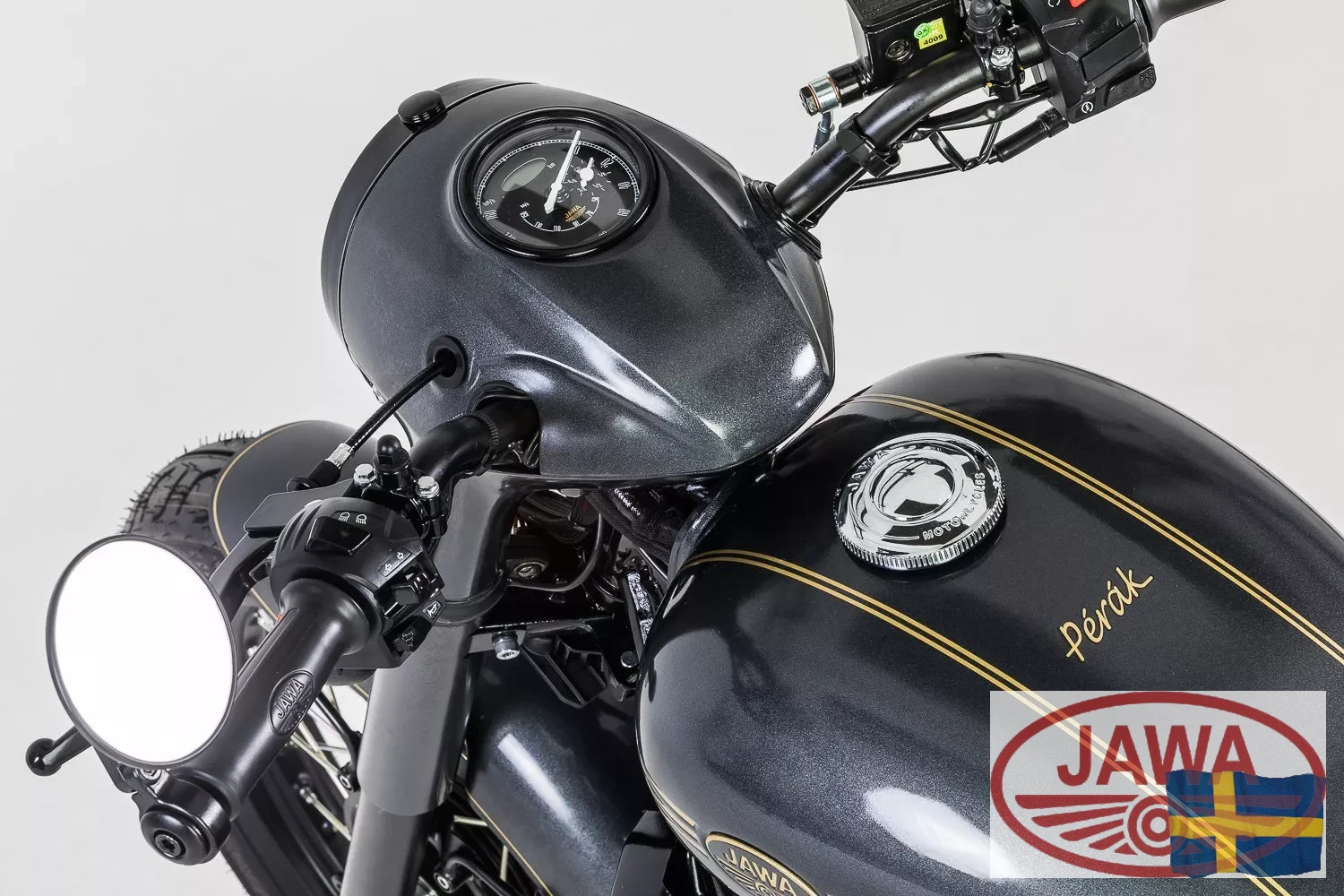 JAWA Perak är inte bara en motorcykel; det är en attityd, en tidskapsel och en av de mest unika uppenbarelserna på dagens mc-marknad. Den blandar den tjeckoslovakiska efterkrigstidens mytiska arv med modern ingenjörskonst för att skapa något helt eget: En fabriksbyggd "stealth"-bobber som ser ut att ha rullat direkt ur en film noir.