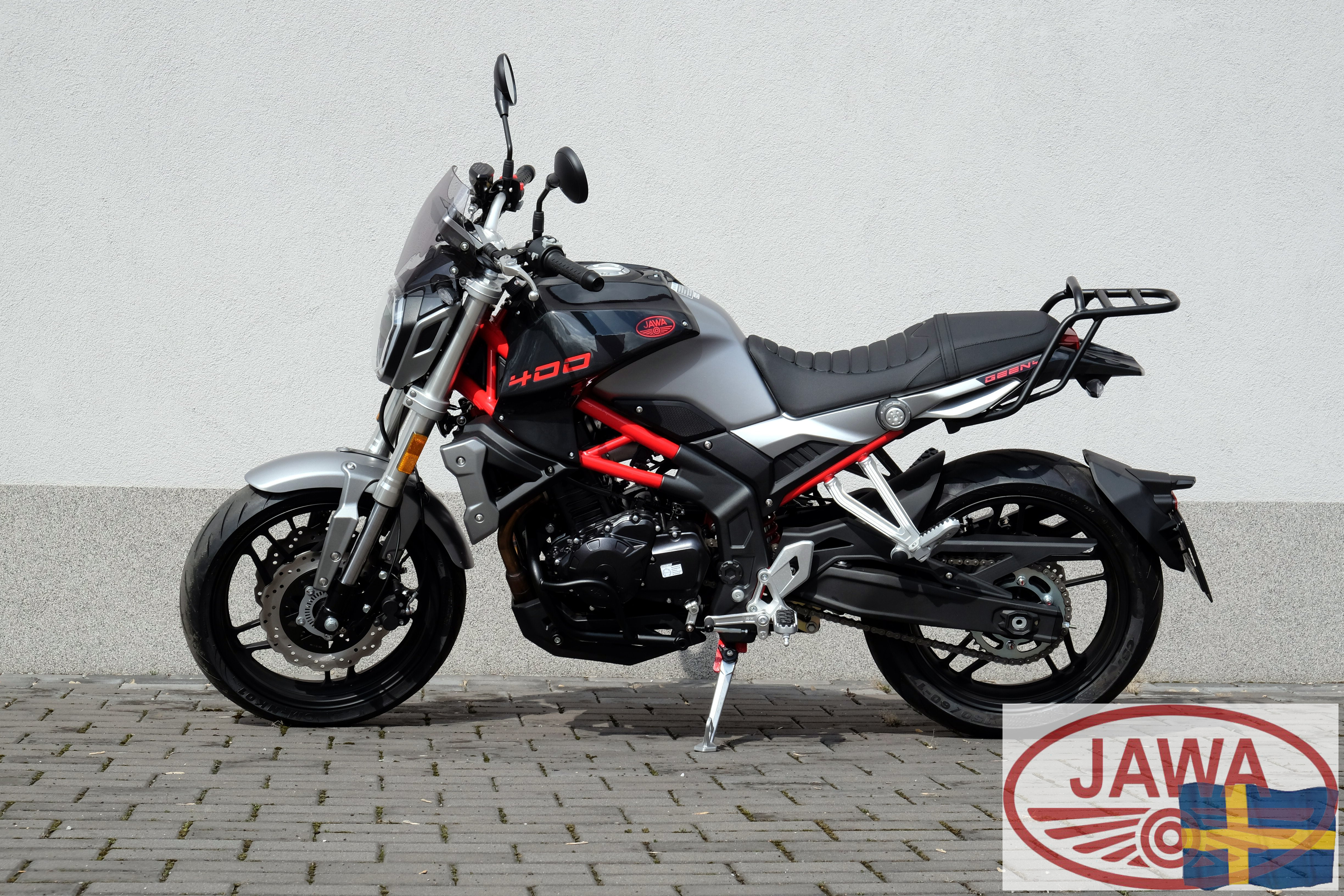 Mycket kraft kräver ett chassi som kan hantera det. JAWA 400 Geeny är utrustad med moderna komponenter som ger dig full kontroll: