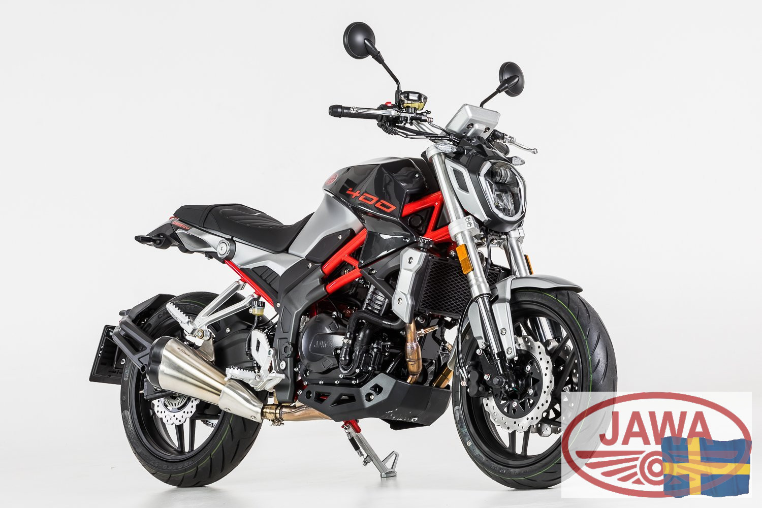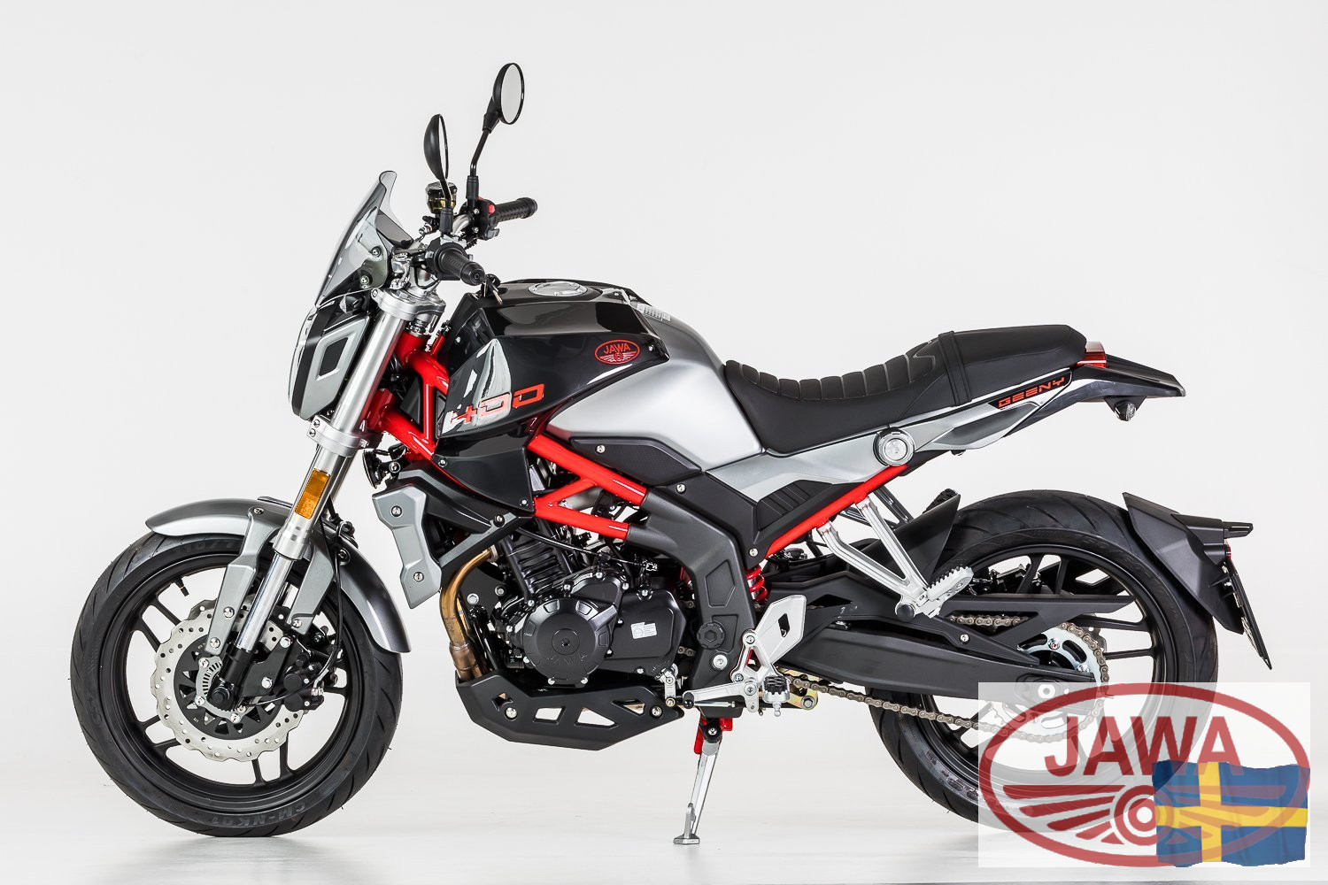 Med nya 400 Geeny kliver JAWA utanför boxen och bevisar att de inte bara är mästare på nostalgi, utan även kan bygga moderna gatuhojar med rejält bett. Den är skapad för förare som vill ha ett ikoniskt märke på tanken, men som kräver den skarpa prestandan, den nakna estetiken och den direkta styrkänslan hos en nutida streetbike. Geeny är designad av tjeckiska formgivare för att vara kvick, lättmanövrerad och oerhört underhållande – oavsett om du zick-zackar genom morgontrafiken eller lägger ner den i kurvorna på favoritlandsvägen.