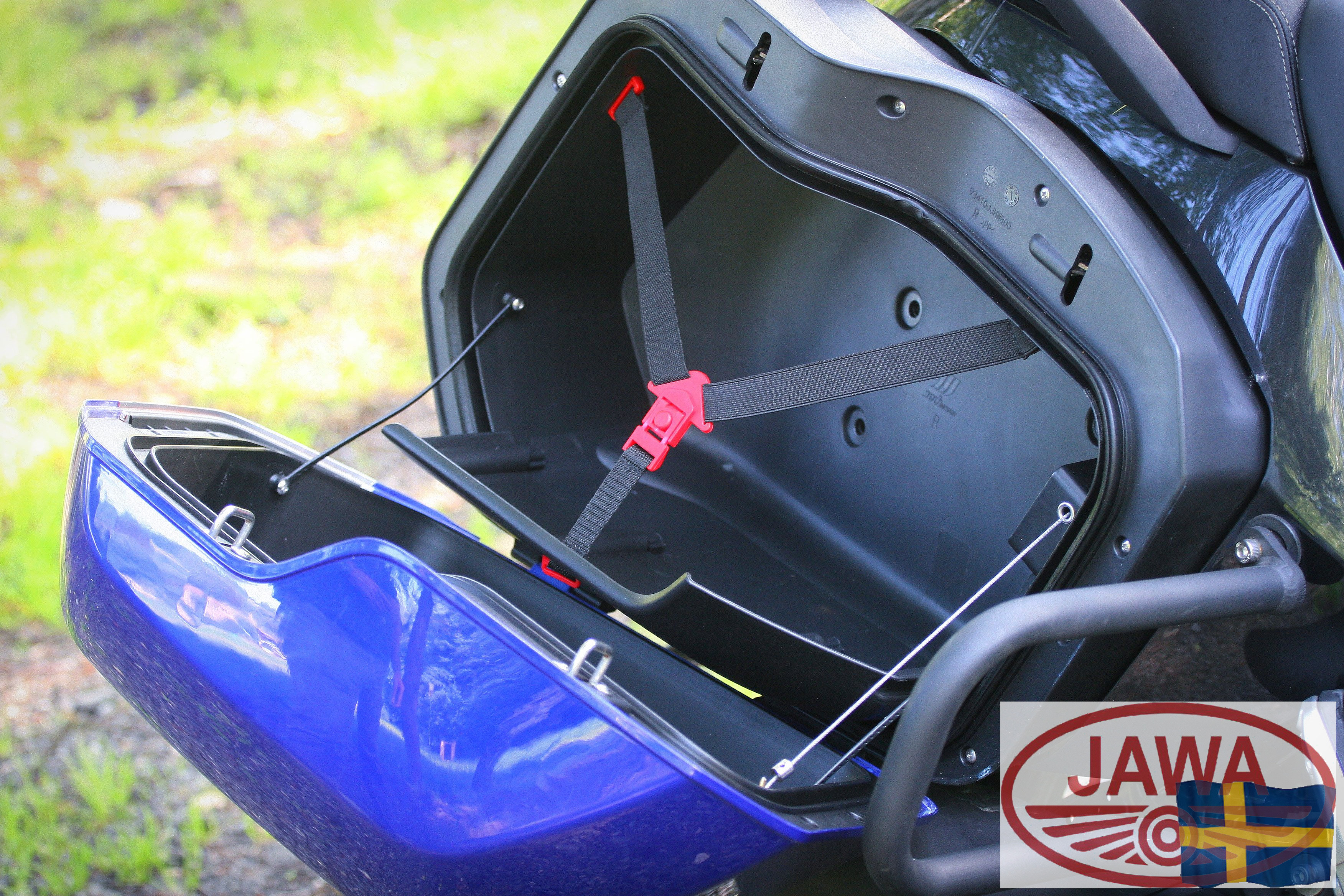 Med en tung och stark resmaskin följer ett absolut krav på väghållning och bromsförmåga. JAWA har därför utrustat JD 750 Touring med kvalitetskomponenter från marknadens toppskikt: