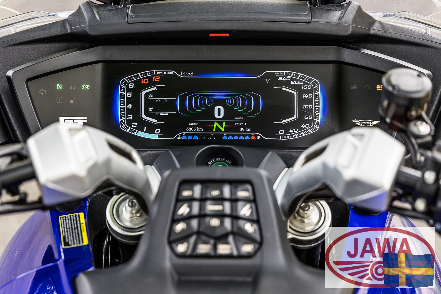 När JAWA tar steget in i det tunga touring-segmentet gör de det med besked. JD 750 Touring (även kallad JD 750 by JAWA) är resultatet av noggrann ingenjörskonst och en vilja att erbjuda en fulländad Grand Tourer för de riktigt långa resorna. Med elegant design från den ansedda italienska designbyrån Marabese och motoroptimering av schweiziska Suter Racing, är det här en premiummaskin som blandar stolt europeisk motorcykeltradition med modern teknologi. Oavsett om du planerar en krokig tur genom Alperna eller en snabb motorvägsetapp över kontinenten, är JD 750 Touring byggd för att ta dig dit med oslagbar pondus.