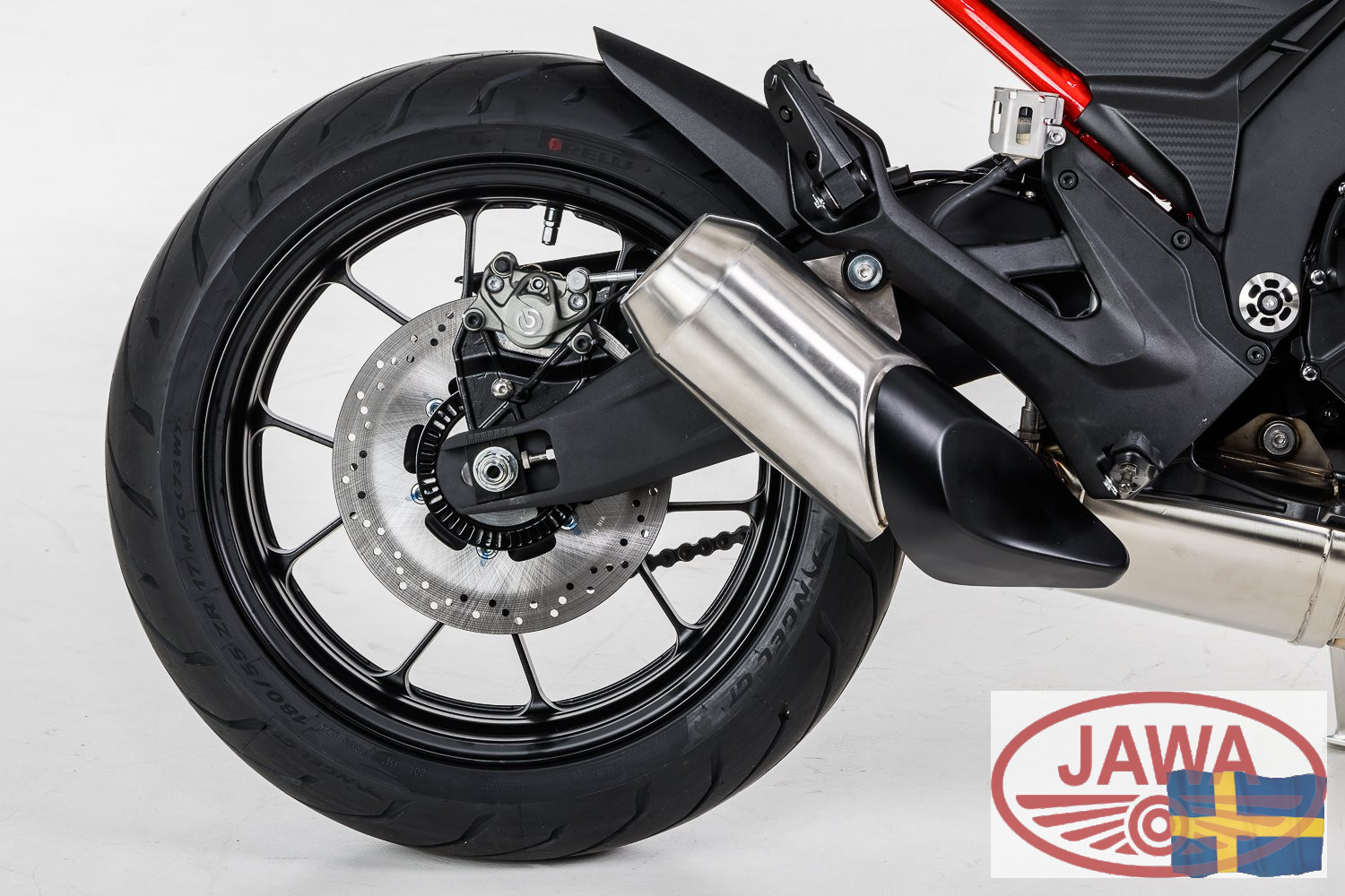Karaktäristiskt ljud: Det snygga avgassystemet är inte bara en fröjd för ögat, utan levererar ett djupt, mullrande ljud som perfekt matchar cykelns potenta karaktär.