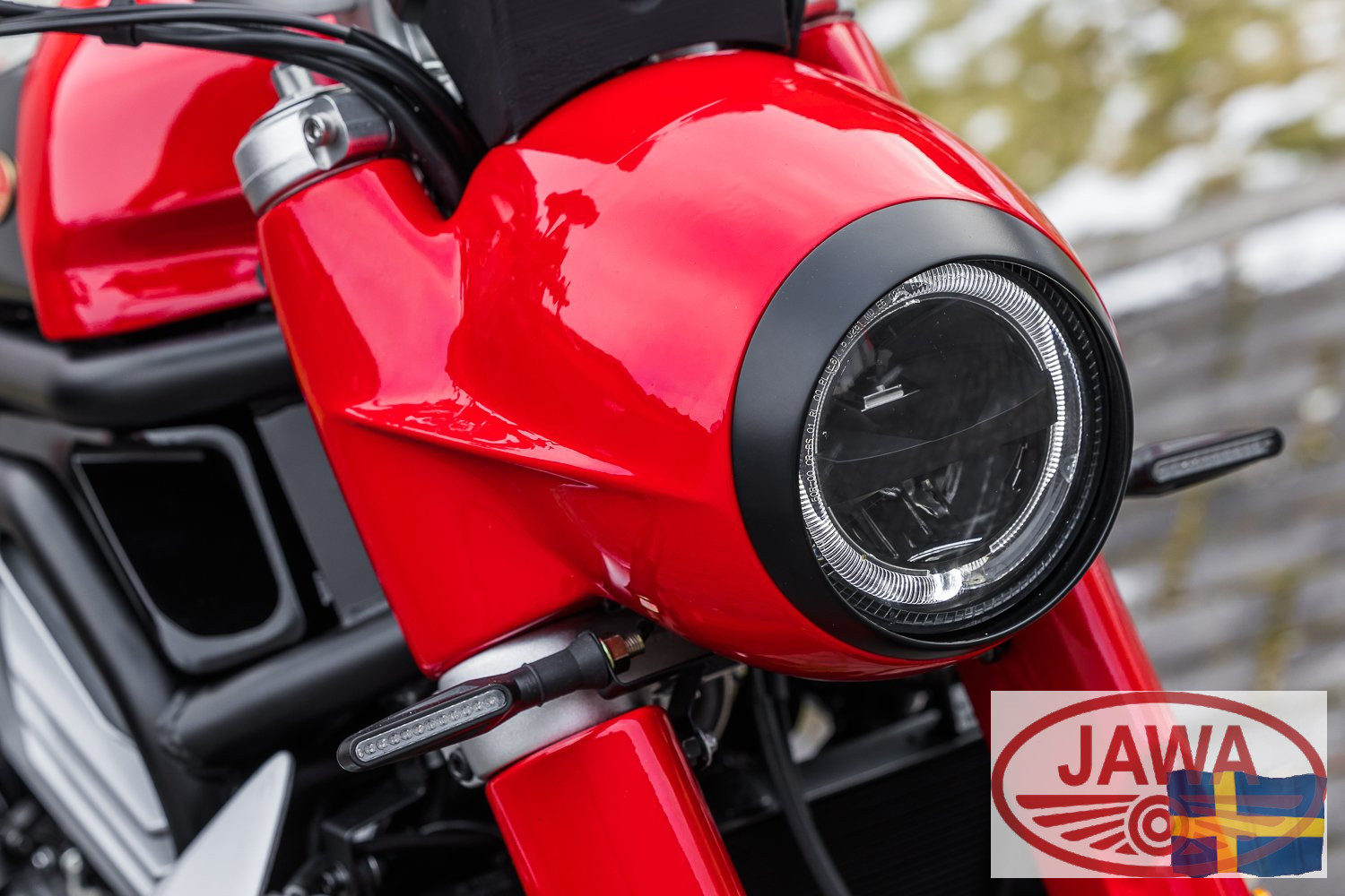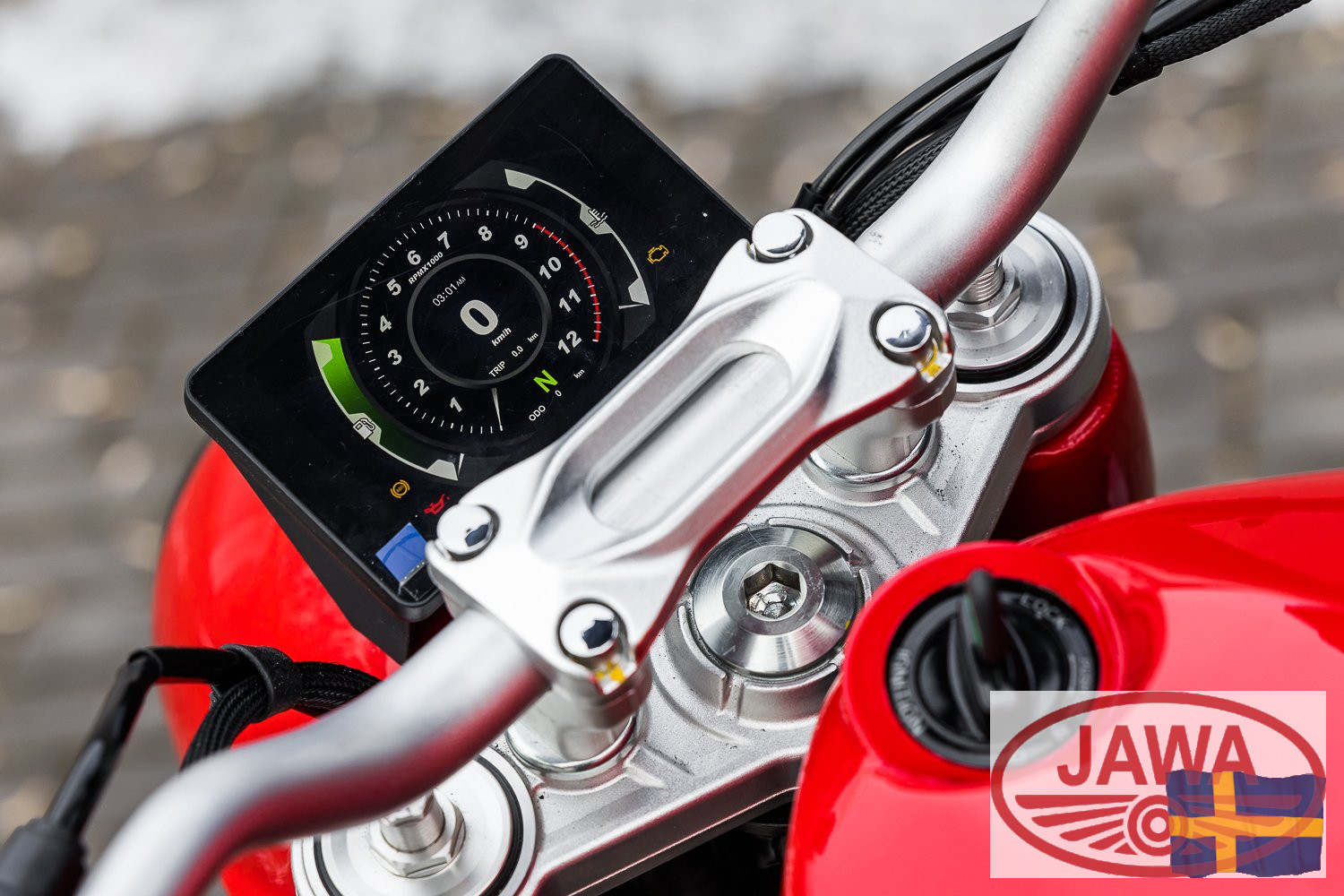 Det handlar inte om att bara ta sig från A till B – det handlar om hur du gör det. JAWA 730 Twin är en muskulös Caféracer byggd för dig som älskar den klassiska, rebelliska mc-kulturen men som kräver kompromisslös gatu-prestanda. Med sin ikoniska runda strålkastare, den sportiga sadelkutsen bak och en aggressiv, framåtlutad hållning levererar den en stilsäker siluett som garanterat vänder blickar. Men det är när du vrider på rullen som magin verkligen händer. Under den blottade rörramen pulserar en vätskekyld parallelltwin på 730 cc som skickar 75 urstarka hästkrafter rakt ner i asfalten. Tillsammans med premiumkomponenter som kraftfulla Brembo-bromsar, modern KYB-fjädring och en skarp TFT-display förvandlas varje kurva till rent adrenalin. Dra på dig skinnjackan, kryp ner bakom styret och upplev stenhård asfaltsdominans med oslagbar stil.