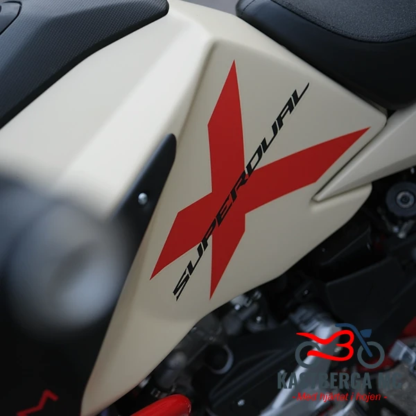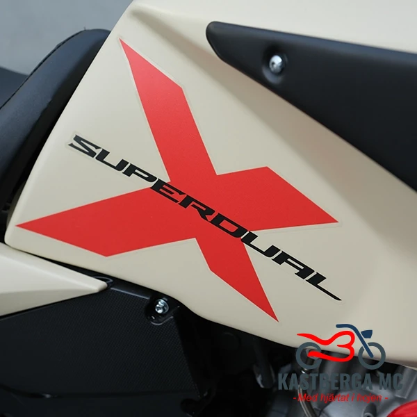 • Hjul: Superdual X är utrustad med 21-tums framhjul och 18-tums bakhjul. Dessa klassiska enduro-dimensioner gör att hojen "kliver över" rötter och stenar betydligt bättre än touring-modeller, och ger dig tillgång till ett enormt utbud av grovmönstrade offroad-däck.
